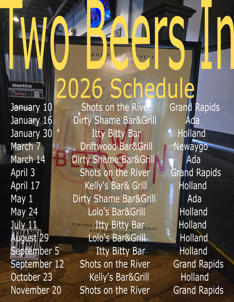 Book us or come catch a live show — and find your next favorite song with Two Beers In. 🎶.
