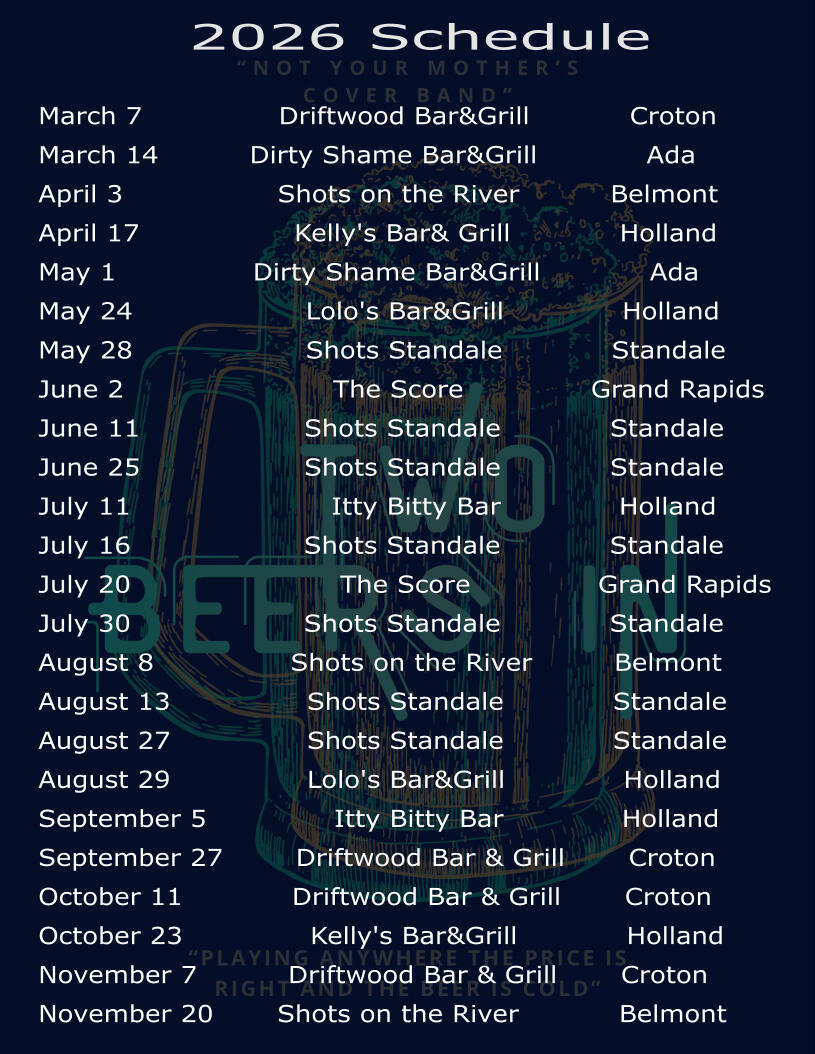 “What kind of music do you play?”We don’t like to box ourselves in—but if you need a hint, think high-energy and wide-ranging. We bring an eclectic mix of rock, classic rock, blues, country, and anything else that feels right in the moment.Like Michigan weather, our setlist is constantly evolving—so stick around. Your next favorite song might be just minutes away.